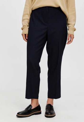 Невысоким девушкам с пышными формами необходимо вытягивать силуэт, и в этом помогут правильно подобранные брюки, в которых чувствовать себя уверенно и уместно могут не только модели 90-60-90. Во время шопинга берите с собой в примерочную брюки на высокой посадке, с широким поясом и стрелками. Такой фасон не только скроет объем в области талии, но и сделает ноги бесконечно длинными, попадая в цель запроса. Кроме того, чтобы вытянуть силуэт, обратите внимание на длину брюк 7/8, то есть — до щиколотки.
