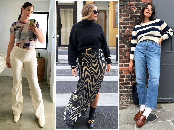 Независимо от того, какой размер одежды носит девушка, в ее гардеробе должна присутствовать классическая белая рубашка. Обладательницам пышных форм следует остановить свой выбор на объемных фасонах, как будто бы вы одолжили вещь у бойфренда. Рубашка должна быть из плотного хлопка — так она будет держать форму и благоприятно воздействовать на кожу. Предлагаем изучить и стильные способы, как носить и заправлять этот базовый элемент в аутфите: завяжите концы рубашки крест-накрест в узел, расстегните верхние пуговицы, оголите одно плечо или закатайте рукава.