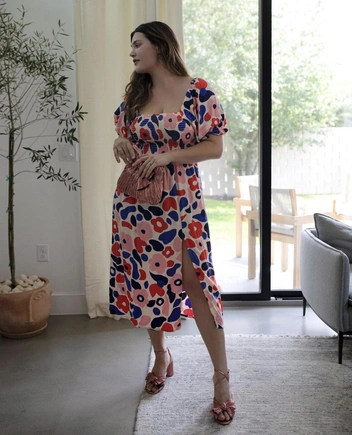 Платья со смещенной вверх линией талии обладают суперспособностью визуально скрывать лишние объемы в области бедер и живота, делая акцент на достоинствах пышной груди. Выбирая такой крой, попробуйте сначала присесть в платье — оно не должно сковывать движения и обтягивать силуэт (читайте также: Офисный гардероб для девушек plus size: 10 главных правил). В выборе цвета правил никаких нет: отдавайте предпочтение любимым оттенкам, в которых вы чувствуете себя уверенно. Но при этом обращайте внимание рисунки: женщинам plus size стоит избегать крупных цветов, клетки или широкой полоски.