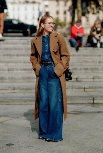 Подобные модели джинсов — настоящая находка. Джинсы полной длины с широкими штанинами и высокой посадкой подходят практически под любую фигуру. Сочетая такие модели с обувью на каблуке, вы сможете зрительно удлинить ноги, а также поставить важный акцент на линии талии. Выбор стоит сделать в пользу однотонного денима темных тонов или классического голубого, а вот принты оставить до нового сезона (читайте также: Самые модные джинсы осени и зимы 2022/23).