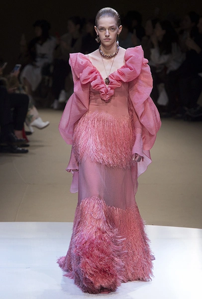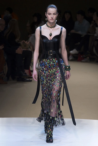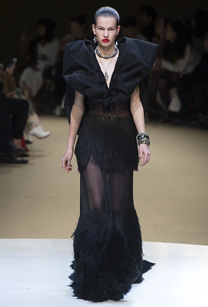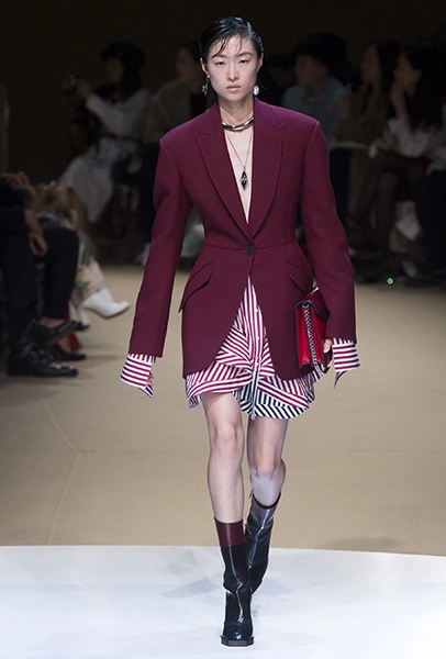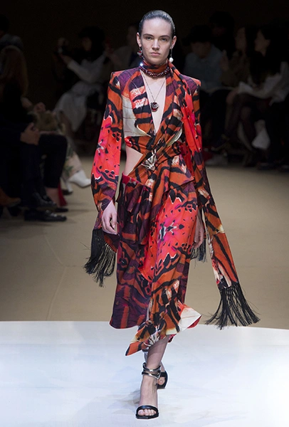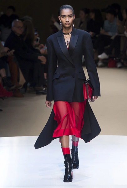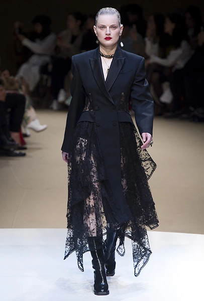 Новая коллекция Сары Бертон получилась чуть более строгой и сдержанной, чем обычно. Преемница Александра Маккуина полюбила четкий крой, широкие плечи и элегантный Х-силуэт. При этом в новом сезоне сильнее проявилось то, что роднит Бертон с основателем бренда: Маккуин боготворил «мужественную» женственность, героинь, которые могут постоять за себя и никогда не станут жертвами, и Бертон тоже начинает двигаться в этом направлении.