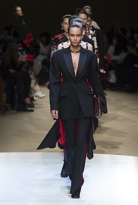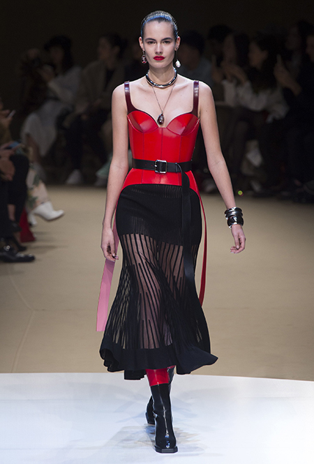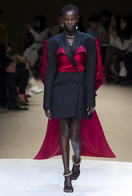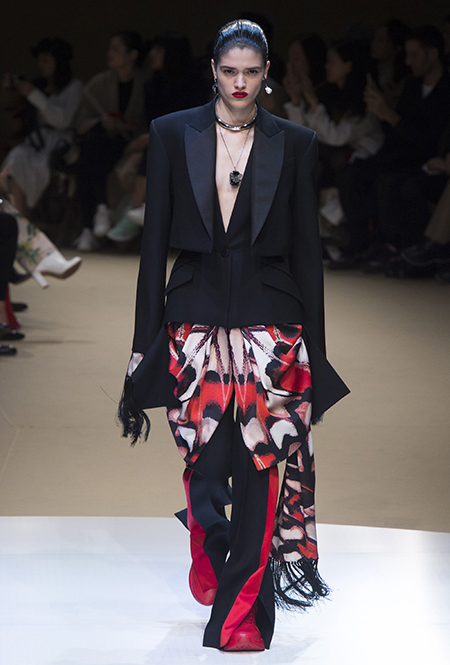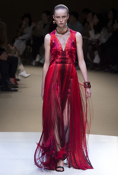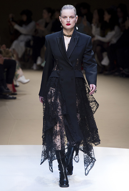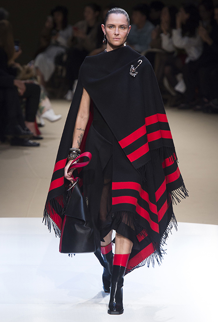 Новая коллекция Сары Бертон получилась чуть более строгой и сдержанной, чем обычно. Преемница Александра Маккуина полюбила четкий крой, широкие плечи и элегантный Х-силуэт. При этом в новом сезоне сильнее проявилось то, что роднит Бертон с основателем бренда: Маккуин боготворил «мужественную» женственность, героинь, которые могут постоять за себя и никогда не станут жертвами, и Бертон тоже начинает двигаться в этом направлении.