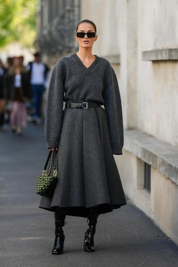 Серый уже сколько сезонов не уступает свое место и считается одним из самых «дорогих» оттенков в мире моды. Такой монохромный образ осенью и зимой всегда будет выделяться. Наденьте кашемировый светлый свитер, подберите к нему темно-серые брюки и накиньте на плечи шерстяное пальто-пиджак. Дополнить аутфит можно кожаной сумкой-шопером и шелковым платком (читайте также: Три цвета в одежде, которые сделают образ дороже).