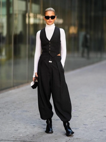 Черные тотал-луки — незаменимая классика, которая всегда выглядит стильно и дорого. Избегать этого цвета в своем гардеробе невозможно, так как он вписывается в образы любого сезона. Черные брюки прямого кроя с заниженной посадкой, объемный свитер с высоким воротом, шелковая юбка, а также пиджак с акцентными плечами, словно снятый с мужского плеча, или пальто в духе тедди-боев — стали основной аутфитов многих модниц.