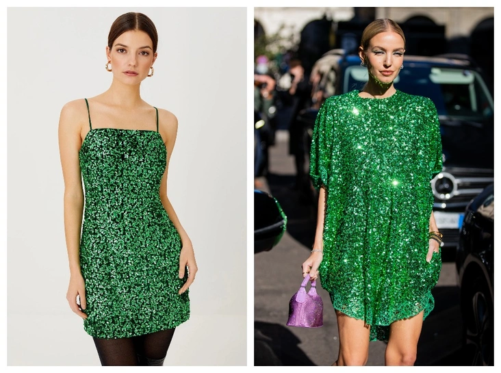 Если вы планируете отправиться в кино, ресторан или на особый формальный прием, без сомнений делайте ставку на сверкающие пайетки. В первую очередь примерьте наряд в трендовой ярко-зеленой палитре — без него в этом сезоне не обойтись.