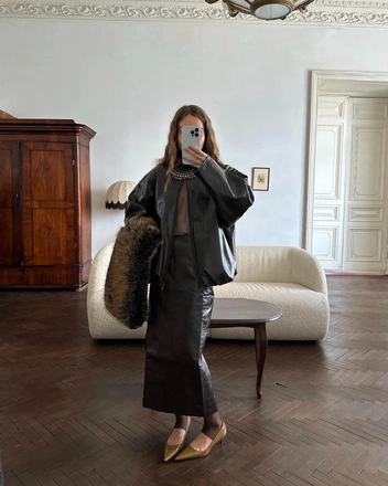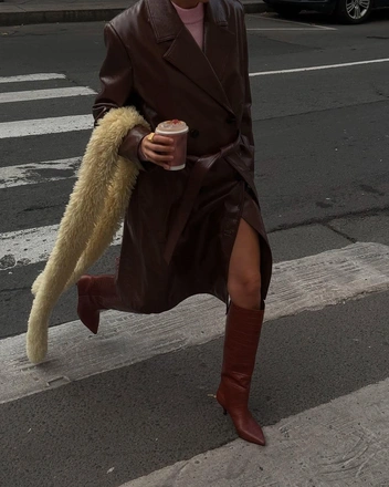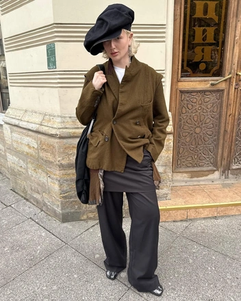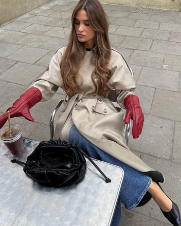 Кроме этого, вспоминаем прием, набравший популярность в прошлом году: носим перчатки в руках, как дополнение к сумке или заправляем их за пояс.