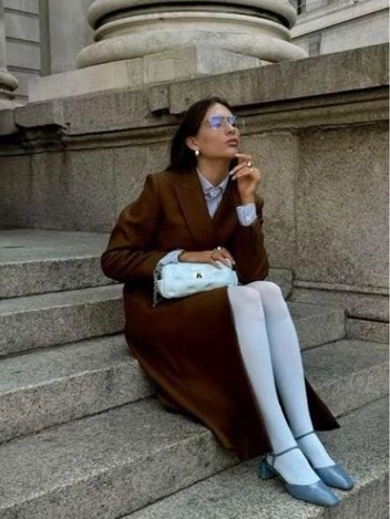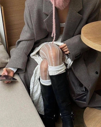 Этой осенью, как и раньше, используем цветные колготки, гетры и носки. А еще лучше — сочетаем их между собой. Пускаем в ход всевозможные фактуры: трикотажные, кружевные, с блестками и нашитым декором. А самые смелые могут воспользоваться лайфхаком из тиктока, надев сначала пару одного цвета, а затем другого, контрастного, и проделав в верхнем слое дырки с помощью ножниц. Тогда флер гранжа вам обеспечен.