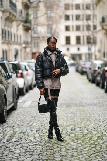 Шпилька в сочетании с пуховиком — спорное сочетание, которое эффектно смотрится лишь на фото. Аутфиты Ким Кардашьян и Кайли Дженнер в стиле спорт-шик заразительны, но в реальной жизни они смотрятся нелепо и странно. Не смешите прохожих и дополните свой пуховик грубыми ботинками на тракторной подошве или же сапогами-трубами на широком устойчивом каблуке.