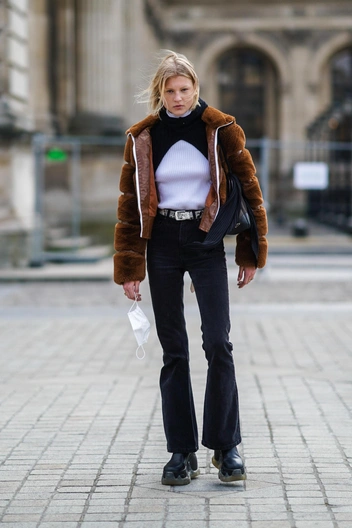 Главная ошибка, которую допускают все женщины, надевая укороченный пуховик, — это его сочетание с длинной одеждой, например, свитерами, рубашками или кардиганами. Запомните модное правило: верхняя одежда должна прикрывать нижние слои вашего образа. Если в вашем гардеробе короткий пуховик, тогда подбирайте к нему аналогичные кроп вещи или же узкие, которые можно заправить в брюки, джинсы или юбку.