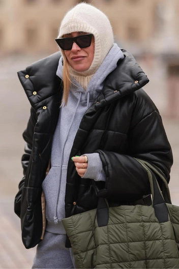 Микро-сумка теряется на фоне оверсайз пуховика и выглядит нелепо, все же следует понимать, что такой аксессуар подходит для вечерних мероприятий и театральных выходов, но не для повседневных аутфитов. В обычные будни рекомендуем носить с собой объемные сумки, например, тоуты или сэддлы (читайте также: Как подобрать сумку к пуховику, чтобы не выглядеть нелепо: 4 модных правила).