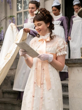 Эпоха Регентства в Великобритании отличалась в светском обществе особенной роскошью: дамы и их дочери носили самые дорогие драгоценные камни, шили безупречные платья на заказ и вплетали в прически редкие живые цветы. Олицетворением аристократии стала дочь виконтессы — Дафна, в будущем герцогиня Бассет. Она с честью принимает свое положение, с гордостью представляет фамилию Бриджертонов и потому получает от королевы звание «бриллианта года». А вот ее сестре Элоизе совершенно не понять Дафну: юная особа отвечает в сериале за феминизм, а позже находит поддержку в Кейт Шарме.