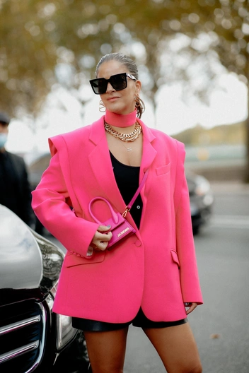 Самый востребованный материал осенне-зимнего сезона — кожа, будь то брюки, пальто или жакеты. Такие предметы гардероба всегда смотрятся эффектно, помогая превратить даже самый простой лук — в модный. Взять хотя бы за основу голубые джинсы и базовую белую футболку и добавить к такому сочетанию кожаный жакет свободного кроя. Получится трендовый лук в стиле любимых модных инфлюенсеров. Дополните такой аутфит мюлями или ботильонами с квадратным мысом и небольшой сумкой на плечо, а также завершите образ популярными очками-маской (читайте также: 5 самых модных моделей очков для осени 2022 года — носите их, чтобы преобразить любой образ).