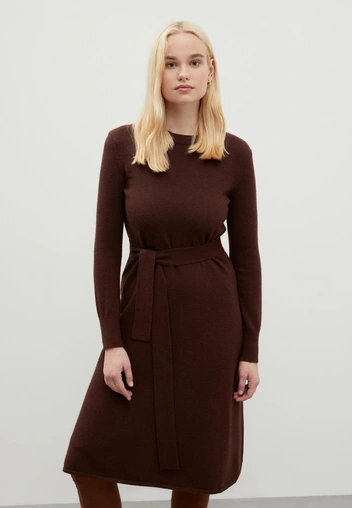 Добавьте в гардероб прямое однотонное платье-свитер чуть ниже колена или по середину икры из шерсти, кашемира или плотного трикотажа. Оно отлично сочетается с длинным пуховиком, дубленкой, прикрывающей бедра, или шубой.