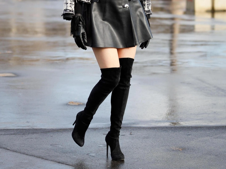 В этом сезоне рекомендуем забыть про тонкий каблук-шпильку, так как он смотрится зачастую вульгарно и дешево. При выборе обуви стоит рассмотреть, например, грубые ботинки на устойчивой подошве, челси, жокейские сапоги на плоском ходу или казаки с маленьким каблуком.