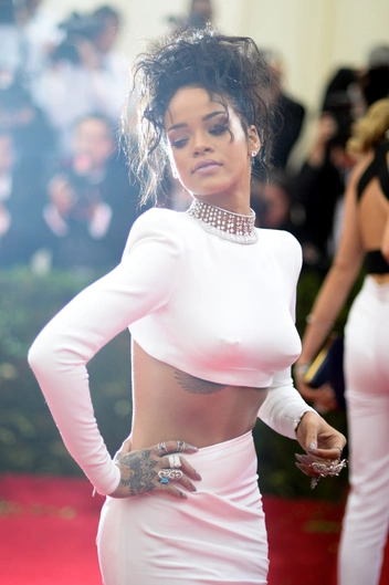 Для появлении на ежегодном балу Met Gala в музее Метрополитен Рианна выбрала потрясающее белое платье. Необычный образ совершенно точно подходит певице, однако один нюанс у него все же был: звезда использовала белье, которое явно выбивается из общей канвы наряда и портит внешний вид платья. Косточки создают помятости и неровности на одежде, что не может не сказаться на общем впечатлении от образа.