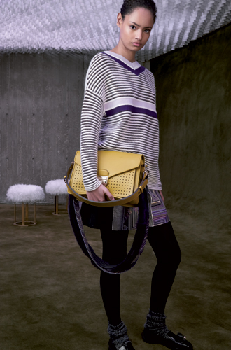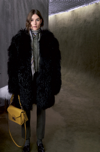 В почете у Longchamp контрастные сочетания: пастельные оттенки лилового и розового сбалансированы черным и коричневым, мягкие летящие ткани прибавляют жесткости с помощью графичного принта с эффектом оптической иллюзии, приталенные силуэты комфортно себя чувствуют в соседстве с моделями прямого кроя – и даже представлять все это призвана элегантная, но все же слегка андрогинная модель Фрея Беха Эриксен.