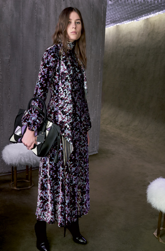 В почете у Longchamp контрастные сочетания: пастельные оттенки лилового и розового сбалансированы черным и коричневым, мягкие летящие ткани прибавляют жесткости с помощью графичного принта с эффектом оптической иллюзии, приталенные силуэты комфортно себя чувствуют в соседстве с моделями прямого кроя – и даже представлять все это призвана элегантная, но все же слегка андрогинная модель Фрея Беха Эриксен.