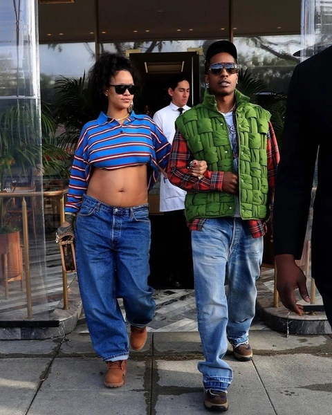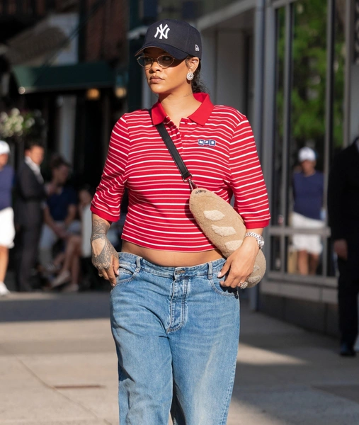 Один из самых запоминающихся беременных луков Рианны — образ с укороченной футболкой в стиле преппи, которая этой весной стала одним из главных трендов сезона. В сочетании с джинсами, массивными ботинками и открытым животом новый стиль выглядел дерзко и продуманно. Комбинезон Attico, джинсы и пальто Roberto Cavalli или шорты с большим ремнем Alexander Wang вместе с серебристым бра — каждый выход звезды был призван подчеркнуть большой живот. Получилось ли у Рианны заложить тренды? Да. Нужно ли это повторять? Если вы чувствуете в себе смелость, то футболку в стиле преппи в сочетании с классными джинсами точно нужно забрать в летний гардероб. (читайте также: Королева «голых» платьев: самые эпатажные наряды Шер, которые вошли в историю).