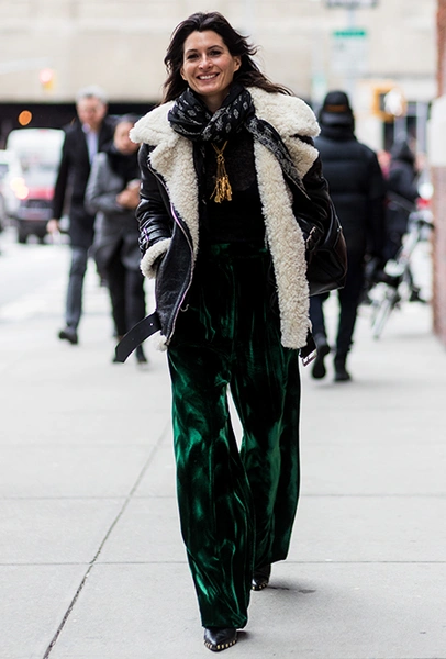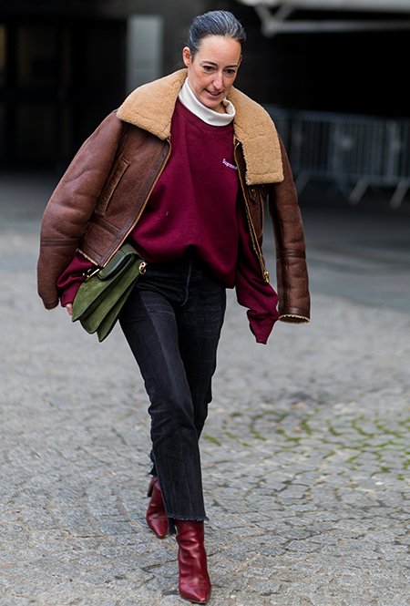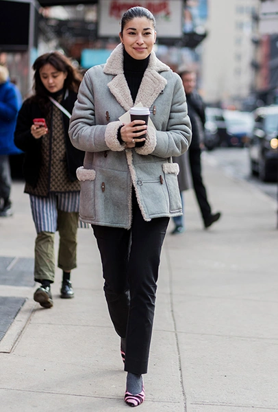Еще один плюс дубленки в том, что с помощью самой обычной, слегка широковатой модели черного или кофейного цвета составить дельный комплект не составит большого труда. Ей по силам и богемно-романтическое настроение 70-х, и бунтарский дух 90-х.