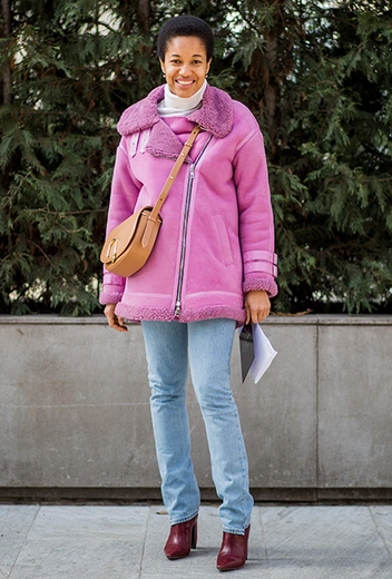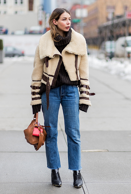 Это зависит от качества самого окрашивания: если оно выполнено по всем правилам, то такая дубленка ни в чем не будет уступать своему «натуральному» собрату. Разумеется, если кожа дубленки светлая, с ней нужно быть начеку, как и с любой другой маркой вещью в вашем гардеробе (читайте также: Как собрать стильный гардероб из кожи и замши: 5 готовых решений).