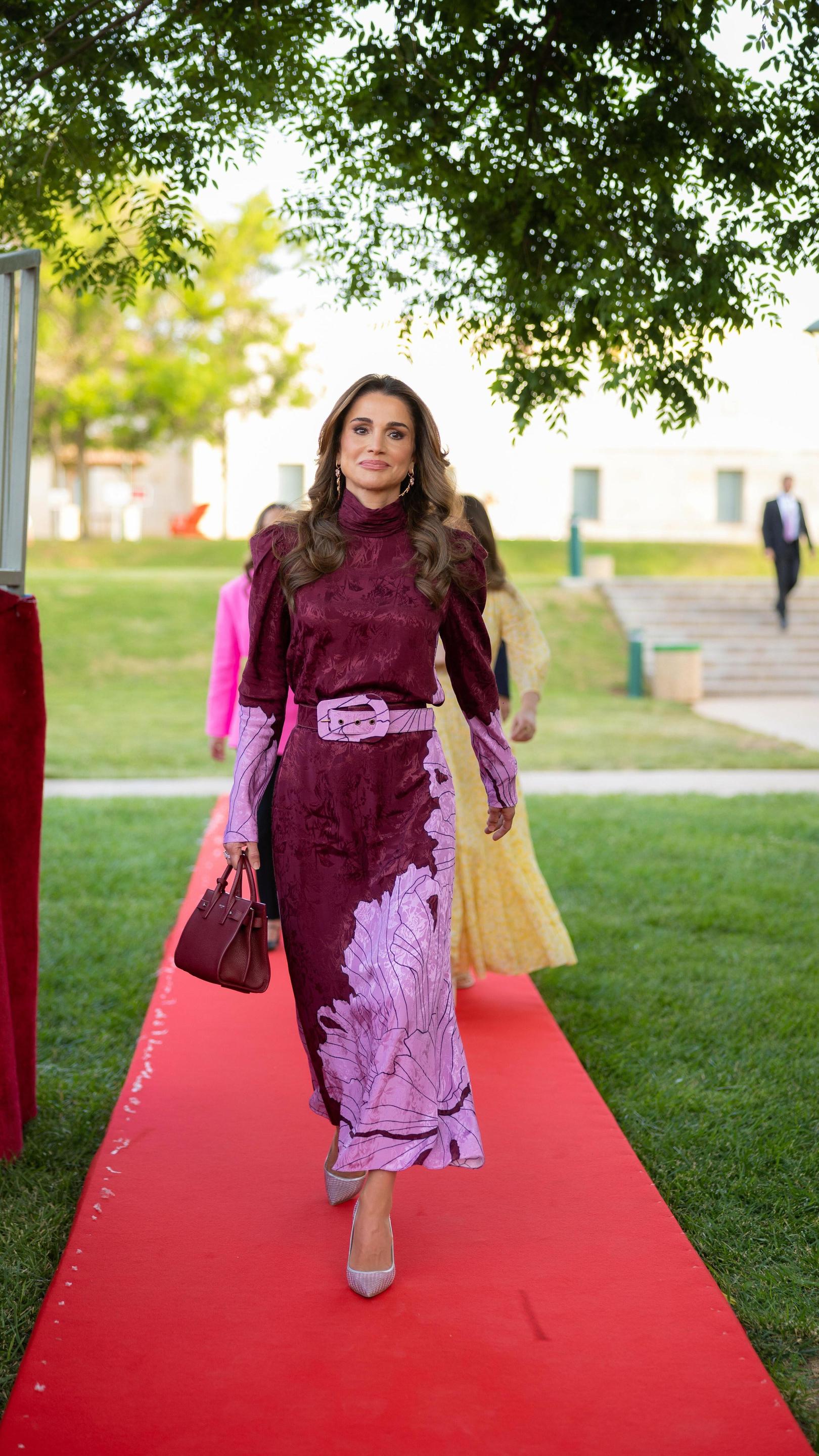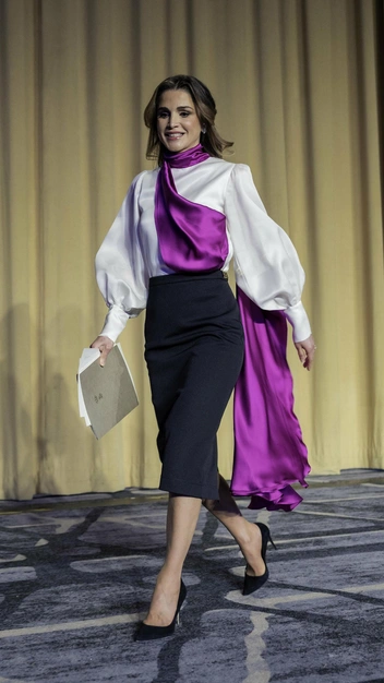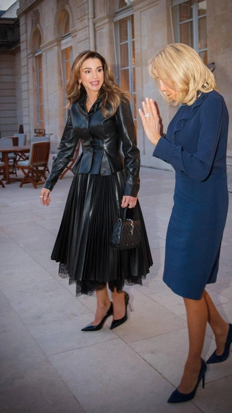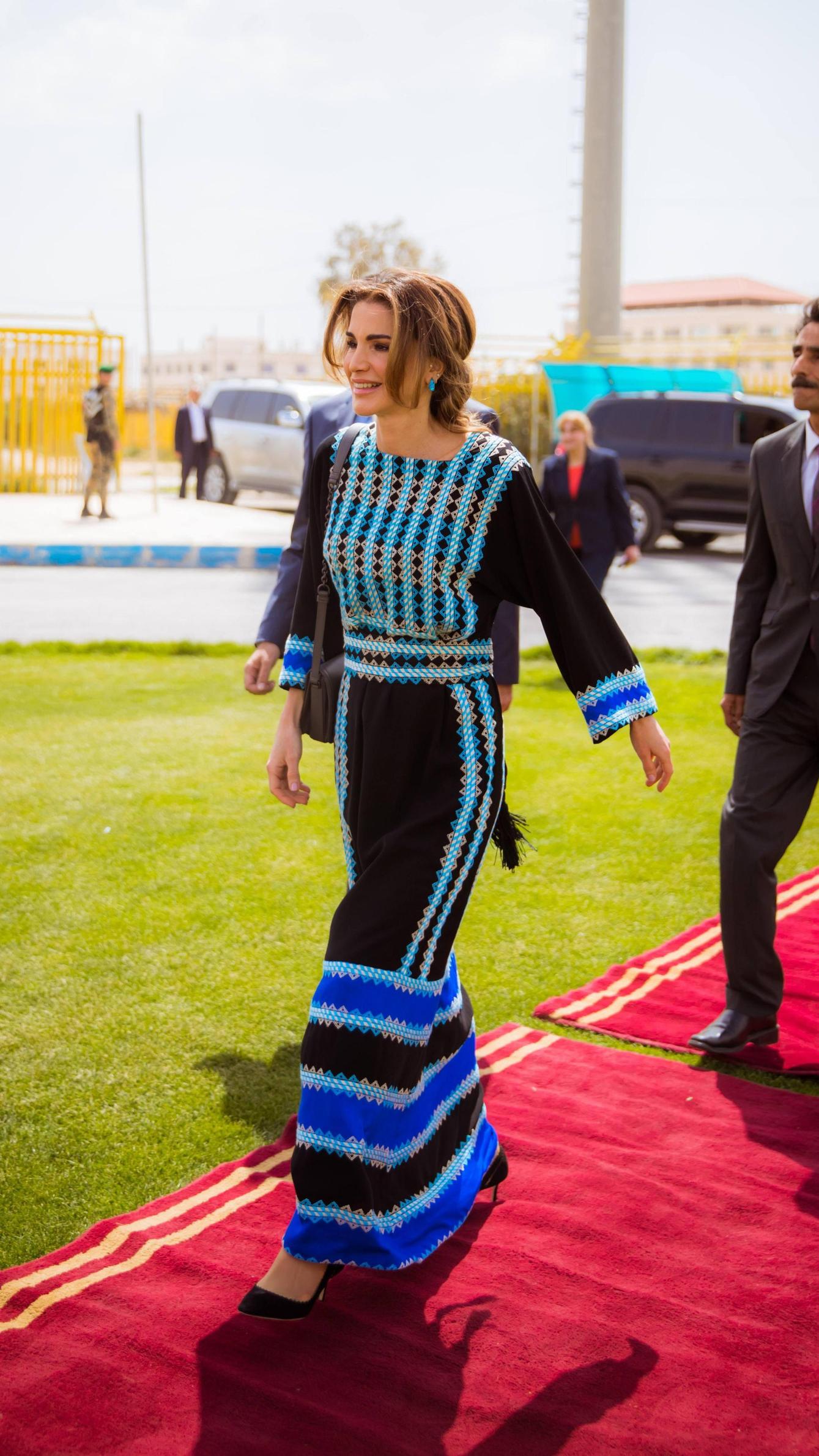 Образы королевы Иордании никогда не бывают скучными. Так в чем же ее секрет? Дело в том, что в каждом своем выходе она умело расставляет акценты: выбирает одежду с кружевом, вышивкой, аппликациями или драпировкой. Один из любимых приемов монаршей особы — это наличие ярких аксессуаров, например, сумок, платков или обуви.