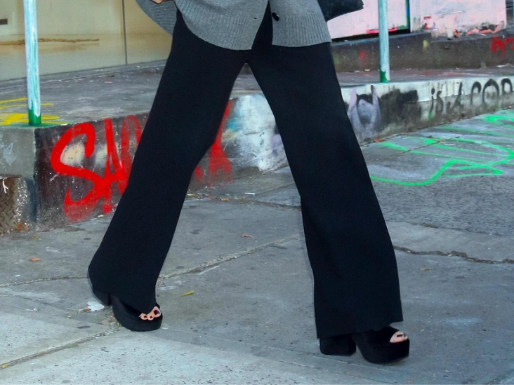 Что выбрать вместо этого: идеальным решением станут туфли с изящным блок-каблуком или элегантные балетки. Первый вариант сохраняют высоту, но при этом выглядят более утонченно и подходят для длительного ношения на протяжении вечера.