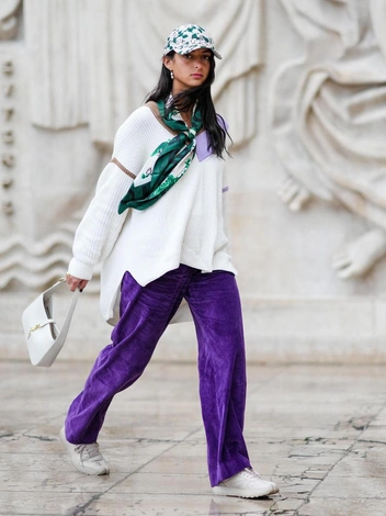 Слишком темные цвета с белым тоже не смотрятся, так как он очень яркий, поэтому при сочетании с противоположными оттенками может «поглощать» их, делая их менее заметными или различимыми — такие цвета будут мало выразительными или четкими на белом фоне. Кроме того, если темный тон имеет сложную текстуру или детали, он может быть не так хорошо виден на белом цвете. Отказываться от бордового, изумрудного или фиолетового в своем гардеробе не стоит. Лучше замените кристально-белый на молочный или бежевый: они приглушенные, а значит, диссонировать с ними не будут (читайте также: Как королевские особы носят белый цвет: 30 вдохновляющих примеров).