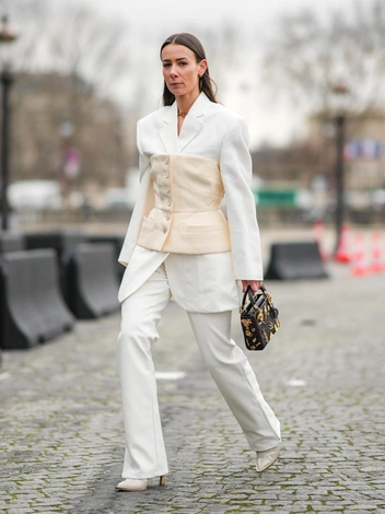 Бледные тона в сочетании с белым — тоже не самый удачный вариант: они будут терять свое значение. Нюдовые и пастельные оттенки могут быть менее контрастными и выразительными на фоне белого цвета и совершенно не будут выделяться в образе. Ваш наряд получится скучным и безжизненным. Поэтому при комбинации блеклых цветов следует уделить внимание балансу, чтобы избежать впечатления «вялости» аутфита. Добавьте украшения или выберете небанальный аксессуар, как шапку, шарф или сумку, что разбавят ваш выход и сделают его интересным (читайте также: Полный гид по самым модным платьям весны и лета 2024: от цветочных до офисных).