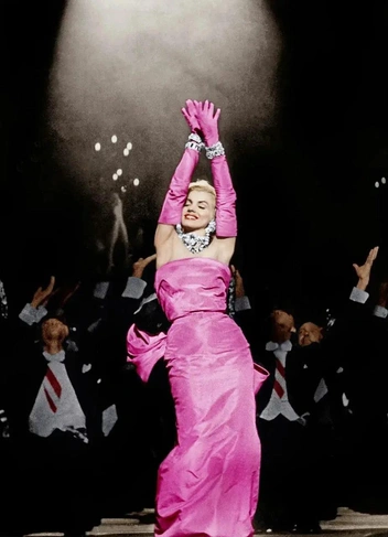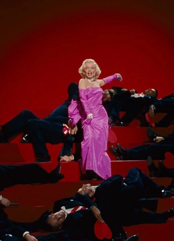 Когда речь заходит об истории моды в кино, обойти стороной и не упомянуть главную блондинку Голливуда — преступление. Одним из наиболее знаковых и легендарных моментов в карьере Монро стало исполнение песни «Diamonds Are a Girl's Best Friends» в фильме «Джентльмены предпочитают блондинок». В этой сцене актриса поет и танцует в платье из розового атласа с огромным бантом.