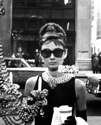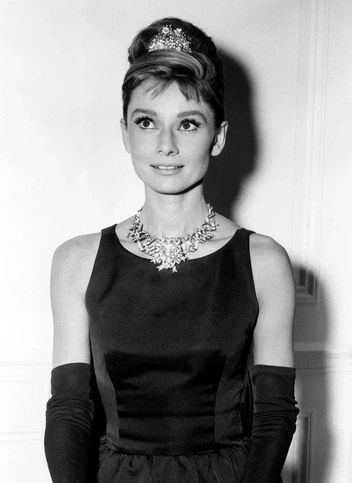 Наряд для первой сцены фильма был создан Юбером Де Живанши, без которого Одри Хепберн отказывалась работать над картинами. Живанши точно знал, что будет подчеркивать утонченную фигуру актрисы: сочетание простоты, элегантности и намека на таинственность. Культовый образ Одри невозможно представить без знаковых аксессуаров — длинных сатиновых перчаток, жемчужного ожерелья, длинного мундштука, хрустальной тиары, крупных серег и солнцезащитных очков (читайте также: Любимые украшения королевских особ и их потрясающие истории).