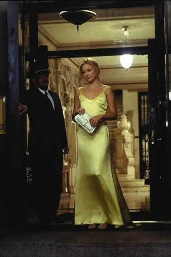 Пожалуй, это самое известное желтое платье в истории мирового кинематографа. Героиня Кейт Хадсон, журналистка Энди Андерсон, появляется в культовом вечернем платье солнечного цвета в момент, когда ложь, которую влюбленные скрывали друг от друга, вскрывается. Своим цветом и очарованием платье не только подчеркнуло характер главной героини, но и стало символом оптимистичного финала. Именно в этот момент бойфренд героини понимает, что не готов потерять ее ради карьерного успеха, да и сама героиня осознает, что не решится отделаться от парня.