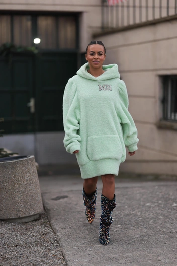 Одно время худи были на пике моды из-за своего удобства и тренда на оверсайз. Однако превратить этот фасон в платье было ошибкой, поскольку удлиненные худи все еще больше напоминают кофты, чем полноценные платья. Кроме того, платья-худи беспощадны к нашей фигуре. Они как бы и должны скрывать возможные недостатки, однако на деле только «режут» длину ног и визуально увеличивают линию талии. Вместо таких полуспортивных платьев предлагаем носить худи с джинсами.