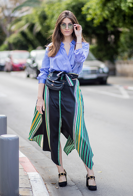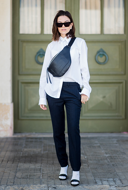 Что касается конкретных инструкций с чем носить и как сочетать поясную сумку, их нет. Самый главный совет: носите ее не только на бедрах, но и выше — на талии или даже на груди наискосок, пропустив ремешок сумки за спиной. В руках, наверное, все же не стоит — иначе зачем вообще эта сумка появилась, если не для нашей свободы?