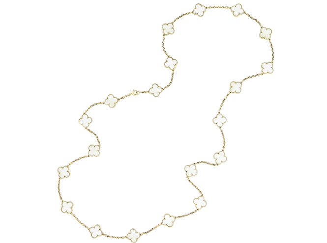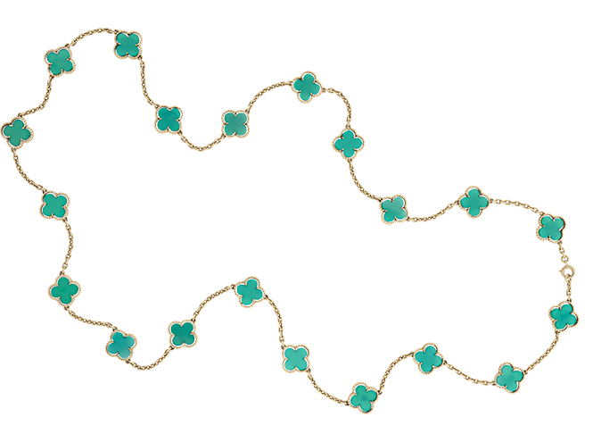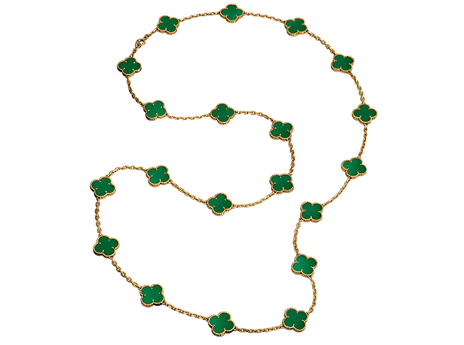 Сегодня, к 50-летию первого сотуара Alhambra, Van Cleef & Arpels представляет новые версии знаменитого украшения. Длинные колье, браслеты, серьги переливаются оттенками серого перламутра и сверкают бриллиантами, основой для которых станет розовое золото. Для тех, кто любит белое золото, есть длинное колье и браслет. Они тоже дополняются бриллиантами, но их блеск оттеняется черным сиянием оникса. Каждое из украшений — выгоднейшая инвестиция: ювелирные изделия, особенно из редких коллекций, не только не падают в цене, но и дорожают. Не это ли и есть удача?