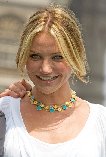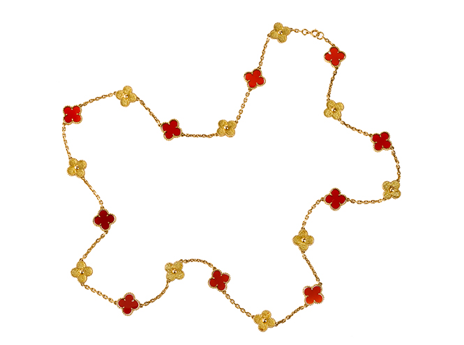 Необычное украшение привлекло внимание знаменитых женщин той эпохи. В 1974 году французская певица Франсуаза Арди на одной из фотосессий появилась в двух коротких и одном длинном колье Alhambra, а знаменитая австрийско-французская актриса Роми Шнайдер снялась в нем в фильме «Взбесившийся барашек» (Le Mouton enragé) Мишеля Деви. Свои экземпляры лаконичных украшений были даже у Грейс Келли. В числе ее фаворитов — золото, кораллы, лазуриты и малахиты, которые монакская княгиня в 70-е годы носила и на публике, и во дворце.