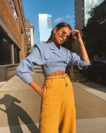 Конец лета-начало осени — самое подходящее время для укороченного жакета, который ничуть не уступает oversize-моделям. Многие модные инфлюенсеры демонстрируют образы с различными вариантами жакетов до талии — из костюмной ткани, в клетку, полоску, с увеличенной линией плеча. В теплую погоду особенно актуальны легкие модели, напоминающие блузу, интересного кроя.
