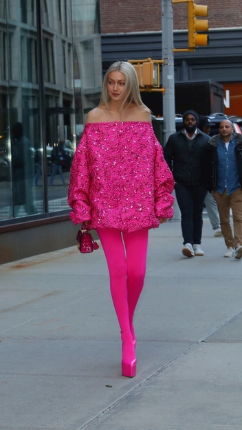 Трендовый цвет пробрался и в спортивный стиль: звезды в этом году носили топы, олимпийки, худи, карго, кроссовки именно в нежно-розовом оттенке (читайте также: Нежная принцесса: 20 модных розовых нарядов Кейт Миддлтон, которые вас вдохновят). Эти тенденции мы поддерживаем, ведь заниматься йогой и силовыми тренировками приятнее в красивой и стильной форме не только черных цветов. Меган Фокс добавила розовый и в спорт-шик, надев монохромные шляпу с перьями, вязаный бра, брюки с карманами и остроносые туфли. А Белла Хадид стилизовала в образе любимые цвета куклы Барби и сделала акцент на ремне из модной эпохи двухтысячных.
