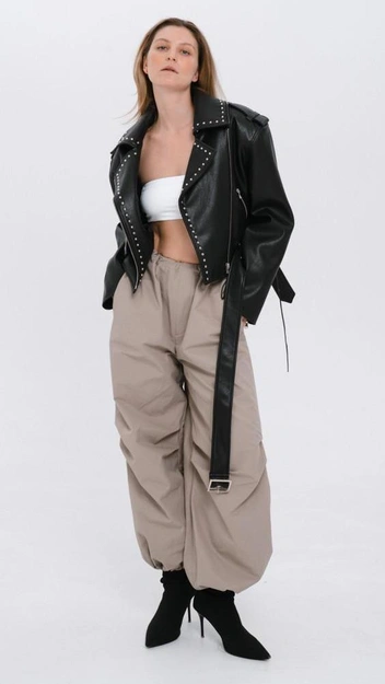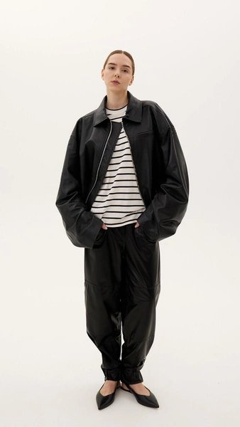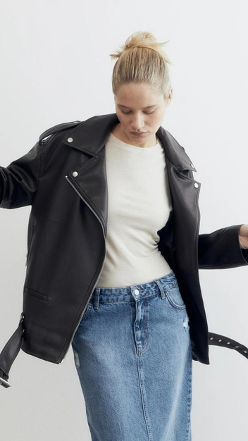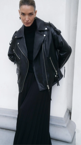Кроме того, не забывайте и про силуэт: косуху следует выбирать не узкую, а свободную, чтобы создавать стильный объем сверху. Приталенные же модели давно покинули сезонные тренды, поэтому о них предлагаем забыть раз и навсегда (читайте также: Устарело навсегда: 6 деталей кожаной куртки, которые выдадут отсутствие вкуса).