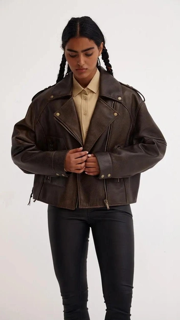 Укороченные кожаные куртки тоже стали несменной классикой, которую модные девушки выбирают из сезона в сезон. Здесь следует особое внимание обращать на крой изделия. Чтобы куртка полностью себя оправдала, ее длина не должна быть ниже тазобедренных косточек — желательно строго до талии. Только так верхняя одежда будет эффектно подчеркивать фигуру и визуально ее стройнить.