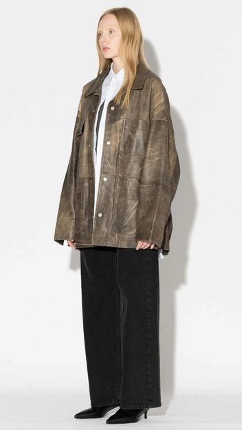 Вам необязательно искать в гардеробе папы или дедушки старые кутки, так как современным брендам тоже полюбился эффект состаренной кожи. «Обработку» винтажем прошли самые разные куртки, которые вы можете без доли сомнения включить в свой осенний гардероб. Для более дерзких аутфитов выбирайте грубые модели с акцентными спущенными плечами, а также свободные укороченные, носить которые можно с брюками на высокой посадке и джинсами-бэгги.