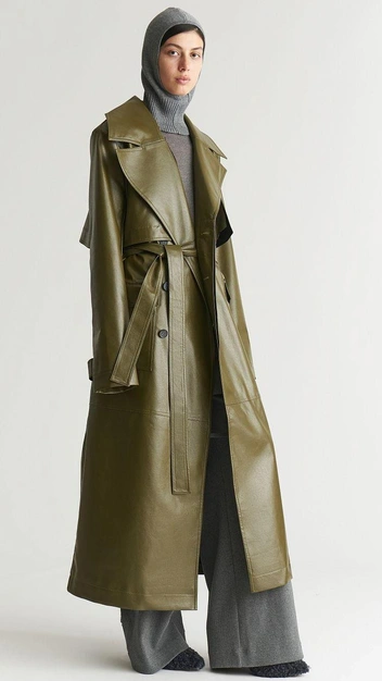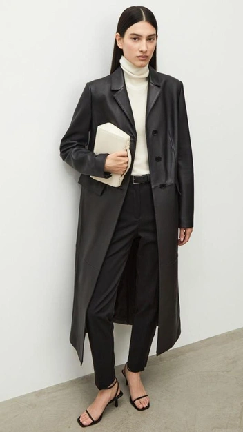 Более женственная альтернатива для смелых девушек — кожаный плащ. Он напоминает по своему крою тренч, однако у него, как правило, нет дополнительных ремешков на рукавах и плечах (читайте также: Кожаные тренчи: как носить самые модные пальто сезона). В этом сезоне отдавайте предпочтение моделям ниже колена — с ними можно носить все что угодно: длинные и короткие юбки, широкие джинсы и скинни, трикотажные платья макси и комбинации.