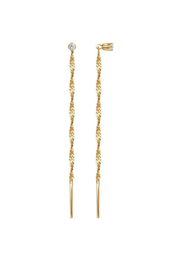 Их особенность в том, что цепочка продевается сквозь мочку, что кажется многим женщинам опасным и страшным. Но поверьте — это безболезненные серьги-протяжки, которые не доставляют болевые ощущения, они, наоборот, придают образам стиль и эффектность. На цепочке есть специальный наконечник, благодаря которому вы продевается изделие сквозь прокол, чем он тоньше, тем проще будет надеть украшение.