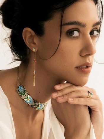 Эта модель имеет длинный декоративный элемент, который свисает от мочки уха. Например, это могут быть перо, цепочка, линия из драгоценных камней, геометрические фигуры, которые образуют вытянутую деталь. Например, культовый модный дом Schiaparelli в весенне-летней коллекции 2025 представил украшения в виде замочной скважины, ракушек и даже скелета рыбы. Предлагаем в этом сезоне повторить трендовую стилизацию: в одну мочку ставьте моносерьгу в виде подвески, а на другую наденьте классическую пусету — таким образом сделайте лаконичный акцент в аутфите.