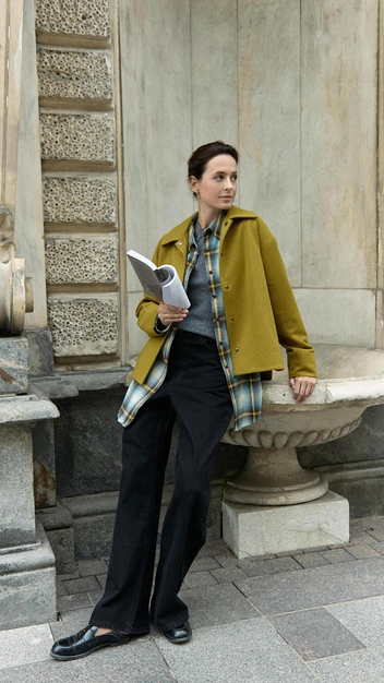 Пиджак осенью — незаменимая вещь. Он станет вам и неким утеплителем, и стильным элементом в гардеробе. Чтобы он прослужил вам как можно дольше, выбирайте модель прямого кроя, что будет прикрывать бедра. Расцветка пусть будет спокойная, присмотритесь к черному, графитовому, коричневому или серому пиджаку — его вы легко наденете поверх рубашки, топа или пуловера.