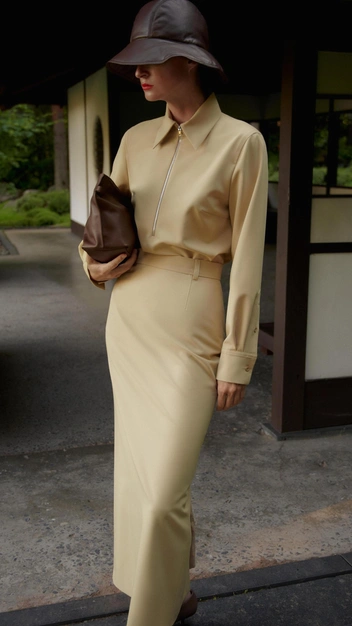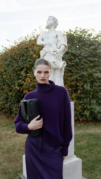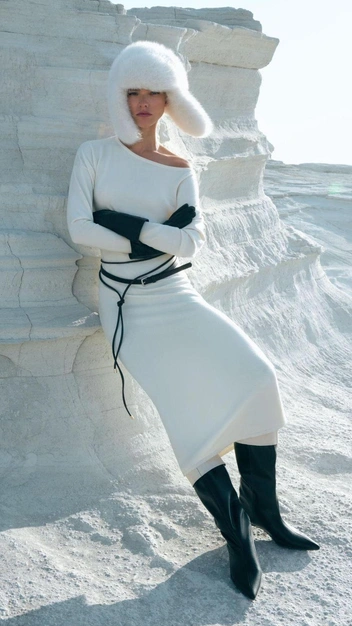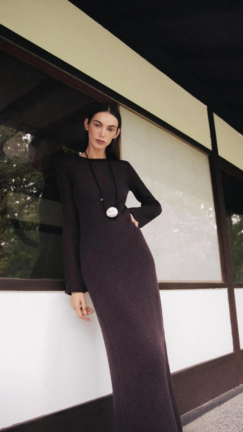 В осенне-зимний период мы снимаем воздушные чайные платья и надеваем уютные трикотажные наряды в длине миди или макси. Этот вечный тренд не утратит свою актуальность и в 2024 году. Присмотритесь к благородным оттенкам: молочному, кофейному, винному — с ними вы получите образ в стиле «тихой роскоши». Но мы предлагаем все же «поиграть» с платьем и дополнить его массивными золотыми браслетами или же кожаным поясом-шнурком.