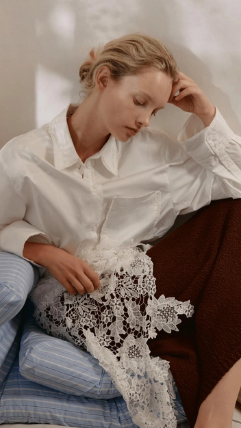Начинаем собирать осеннюю капсулу и сразу же пополняем коллекцию многофункциональным предметом — базовой оверсайз рубашкой в мужском стиле. Такие были еще в тренде в прошлом веке, поэтому в их актуальности даже не сомневайтесь. Рубашку можно надеть не только в офис или на деловую встречу, но и в театр, музей или на свидание (читайте также: 20 главных трендов осени и зимы 2024/25: самый полный гид).