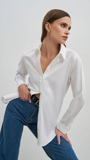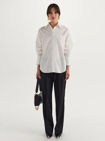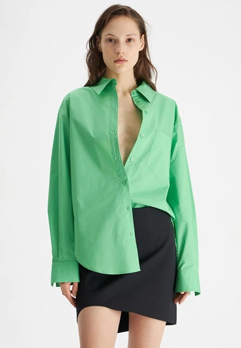 Плотная рубашка из хлопка — та вещь, что будет всегда актуальна. Она составит пару прямым джинсам, юбке, костюмным брюкам и всему тому, что есть в вашем гардеробе. Носите ее и поверх топов, сочетайте с сарафанами и используйте в качестве верхнего слоя. При выборе цвета не обязательно останавливаться на белом оттенке — мы предлагаем рассмотреть как пудровые тона, так и насыщенные. Главное, чтобы рубашка легко сочеталась с другими вещами из вашего гардероба.
