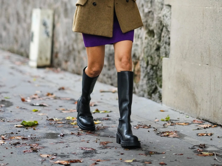 Главные модницы носят именно высокую обувь, например, ботфорты, «трубы» или «чулки», потому что сапоги ниже колена нарушают пропорции и смотрятся дешево. Вместо них отдайте предпочтение кожаным моделям, которые могут быть как на тракторной подошве, так и на каблуке. Обращайте внимание и на декор сапог — стильными будут минималистичные пары без страз, рисунков и ремешков в спортивном стиле.