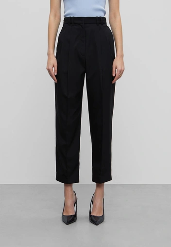 Начинать создание капсулы предлагаем с низа: для рабочих будней вам потребуется несколько пар брюк, а если дресс-код нестрогий, можно примерить и джинсы. Подбирайте модели в соответствие с вашей фигурой, чтобы, например, вытянуть силуэт или скрыть недостатки. Для первого случая подойдут брюки со стрелками, а для второго — свободный фасон прямого кроя из плотного материала.