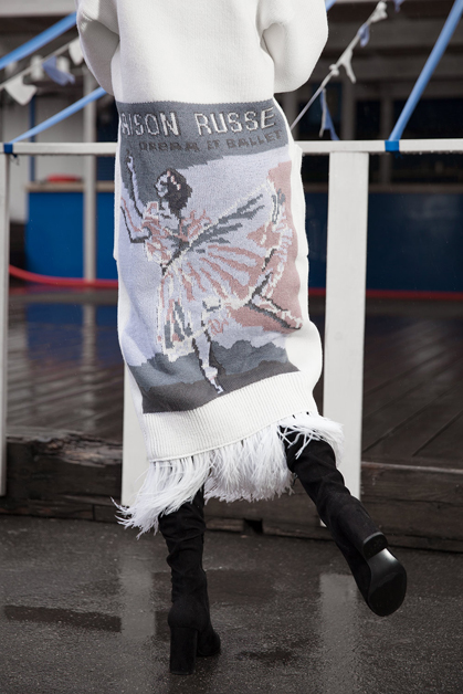 Ироничный и игривый образ для пятничного вечера в кругу модных персон. Слово модных стоит подчеркнуть, боюсь, в другой компании тапочки скорее стереотипно рассмешат, чем порадуют собеседников. Если ваш уровень восприятия не позволяет выйти на улицу в меховой домашней обуви (невероятно популярной в этом сезоне, поверьте), меняем их на лоуферы, слипоны или ботильоны. Кстати, модные сейчас пайетки и стразы подойдут в качестве текстуры не только верхней одежды, но и обуви. Главное – знать меру и не превратиться в светящуюся ночью елочную игрушку.